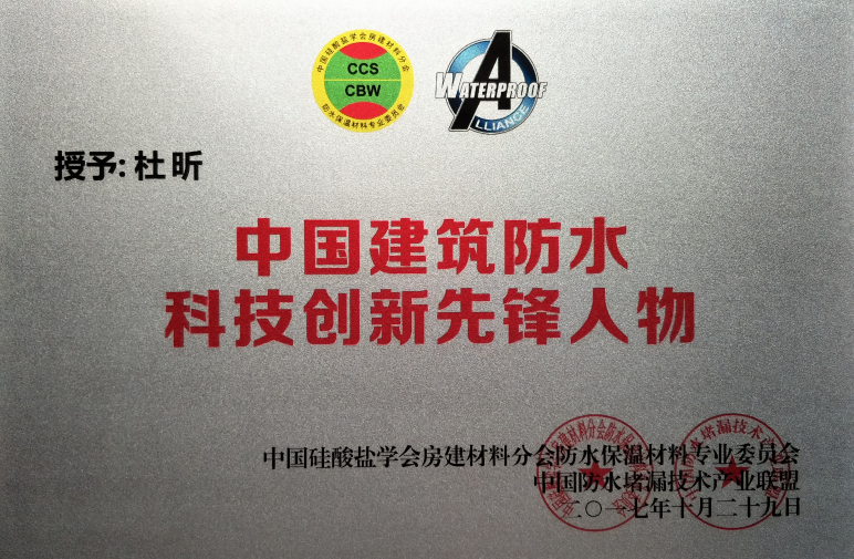 • 杜昕中國建筑防水科技創新先鋒人物證書