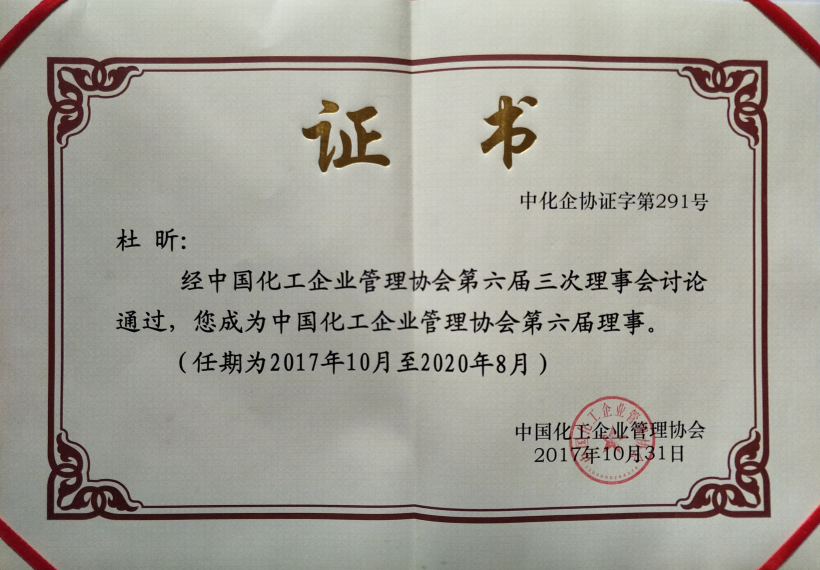 • 杜昕中國化工企業管理協會第六屆理事證書