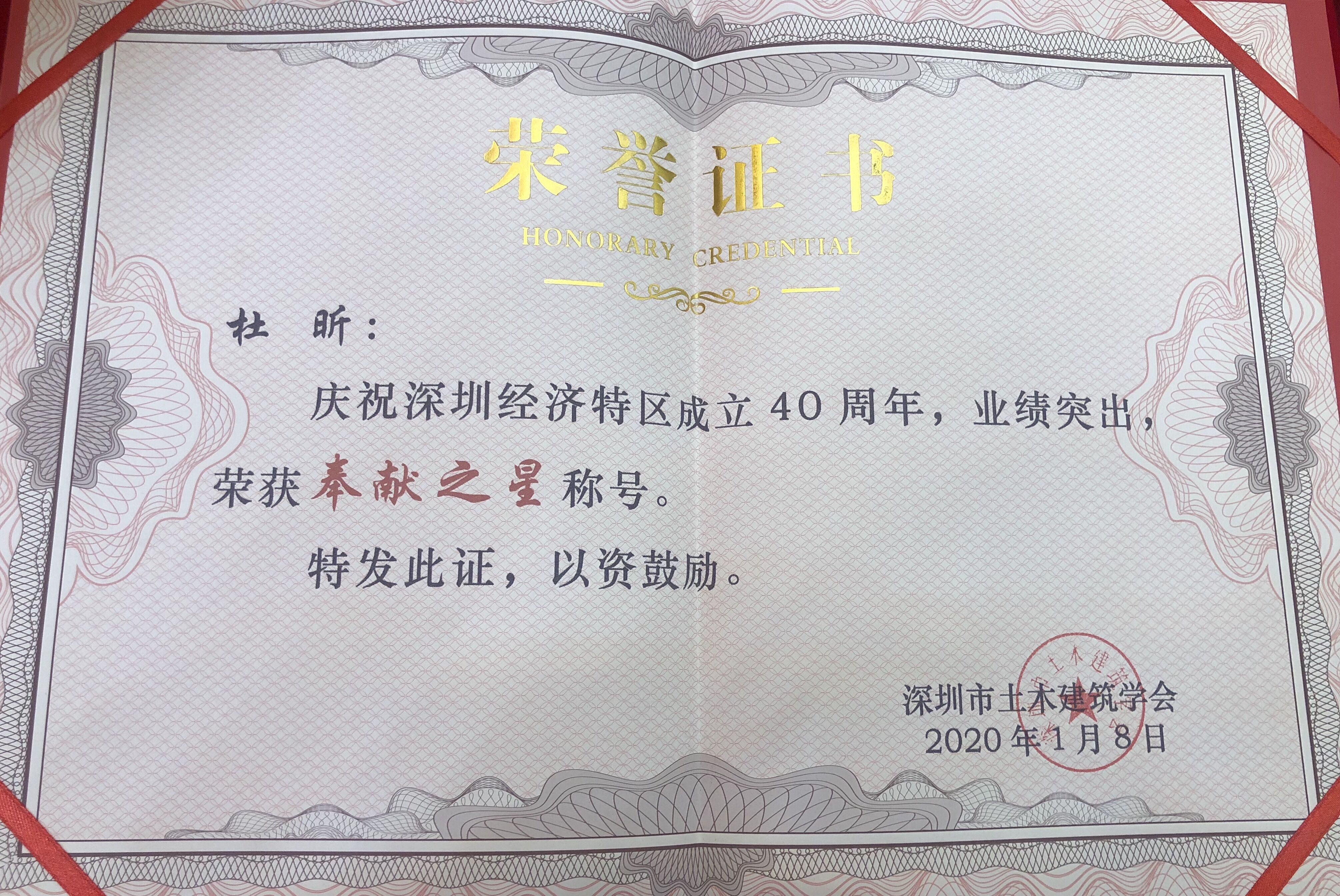 • 杜昕“奉獻之星”榮譽稱號