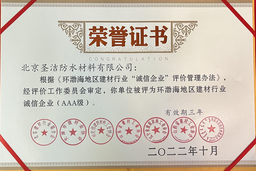 • AAAA建筑防水行業質量誠信評價證書